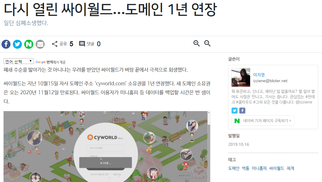 다시 열린 싸이월드…도메인 1년 연장