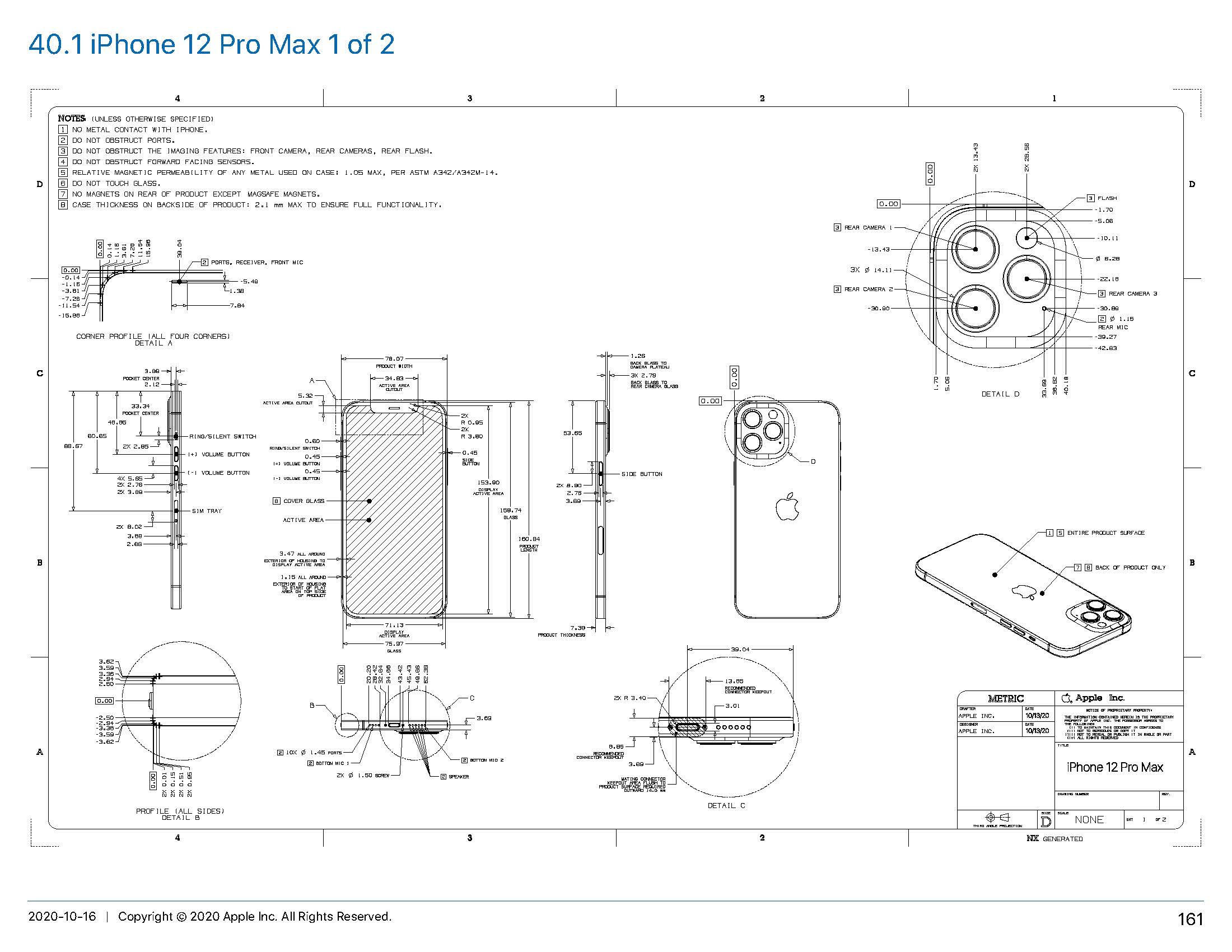 가장 최근에 출시된 아이폰 12의 도면이네요. 아니 정확하게는 각각의 세부 구성, 치수등으로 케이스 등을 제작하는 서드파티 에서도 쉽게 참고할 수 있도록 해줍니다.