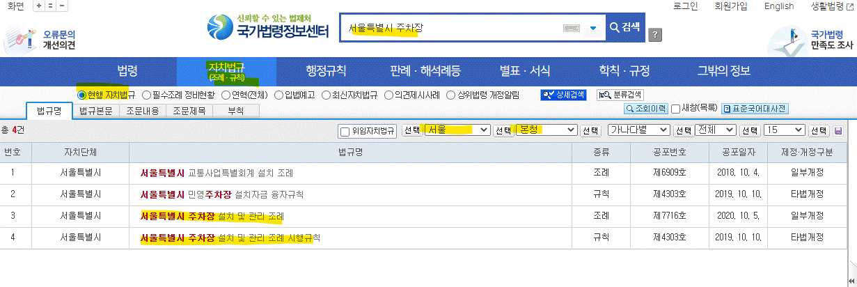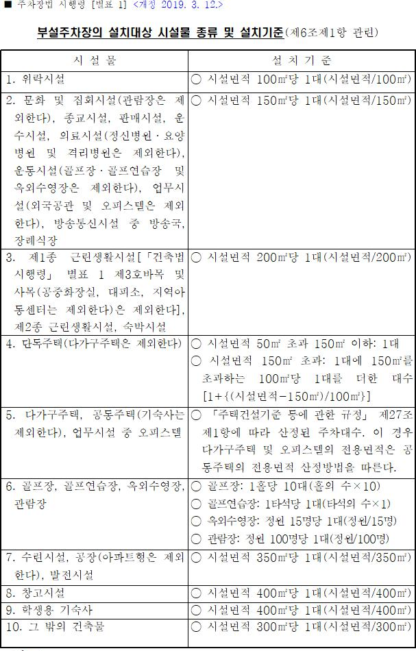 더도 덜도 아니고 딱 꼬집어서 '주차장법' 이라고 명시되어 있으며
