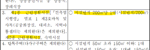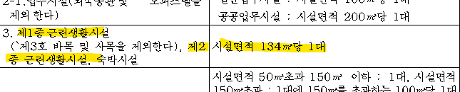 주차장법에서 200m2 당 1대 였던 기준이 134m2 당 1대 로 상당히 강화가 되어져 있습니다.