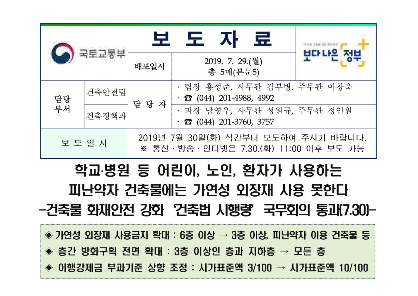 건축물 화재안전 강화‘건축법 시행령’국무회의 통과(7.30)
