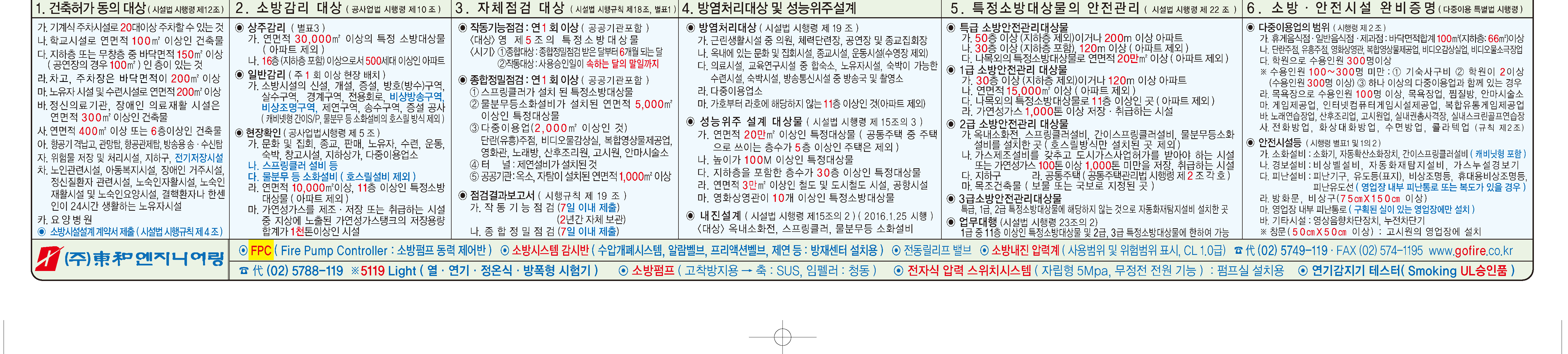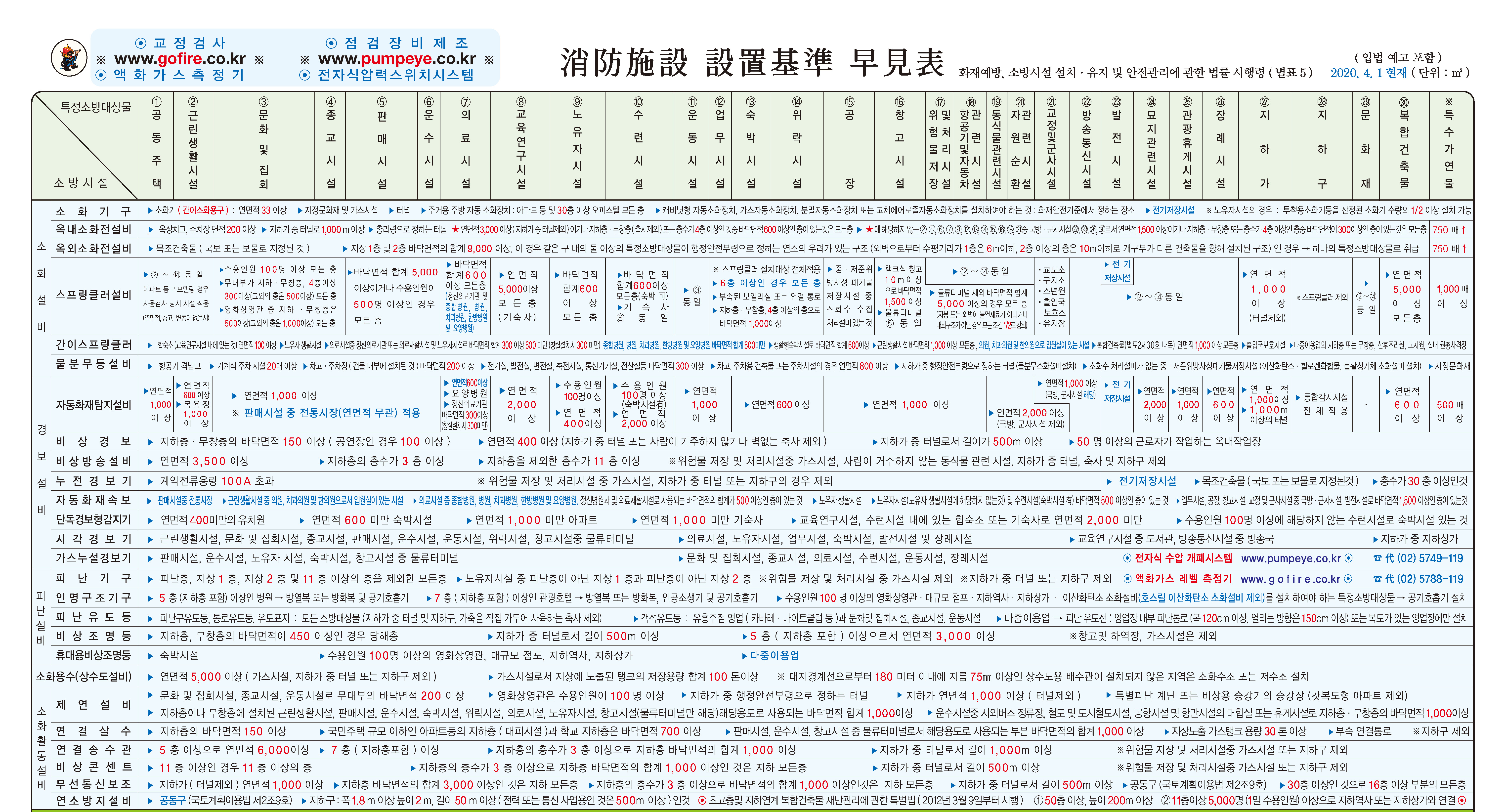 지금 보시는 이미지는 동화엔지니어링에서 지속적으로 제공해 주는 소방시설 설치기준 조견표 입니다.