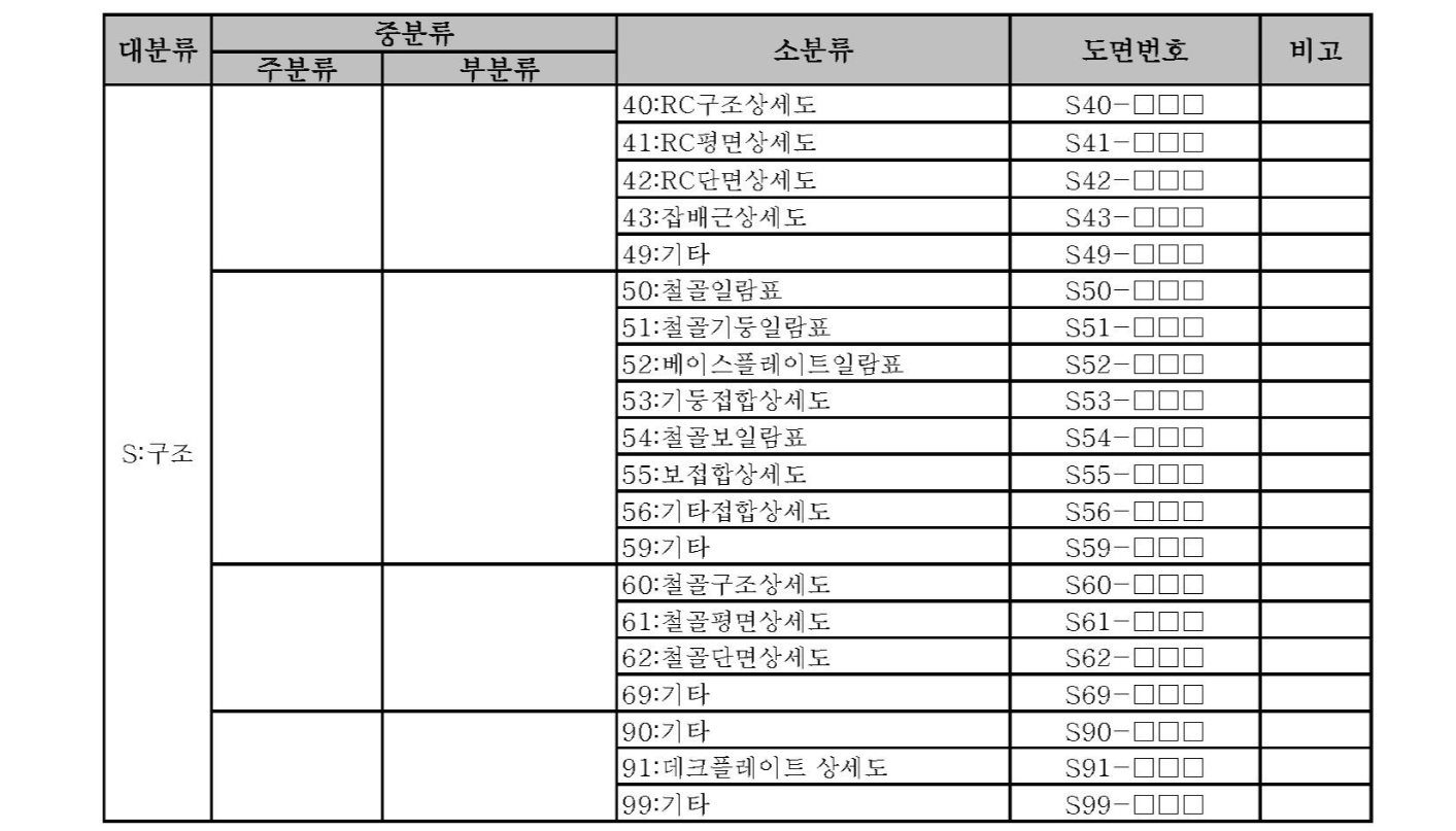 이 목록을 기준으로 도면번호를 보시고 이 도면에는 이런 내용이 들어 있겠구나 정도만 파악해 주시면 좋겠습니다.