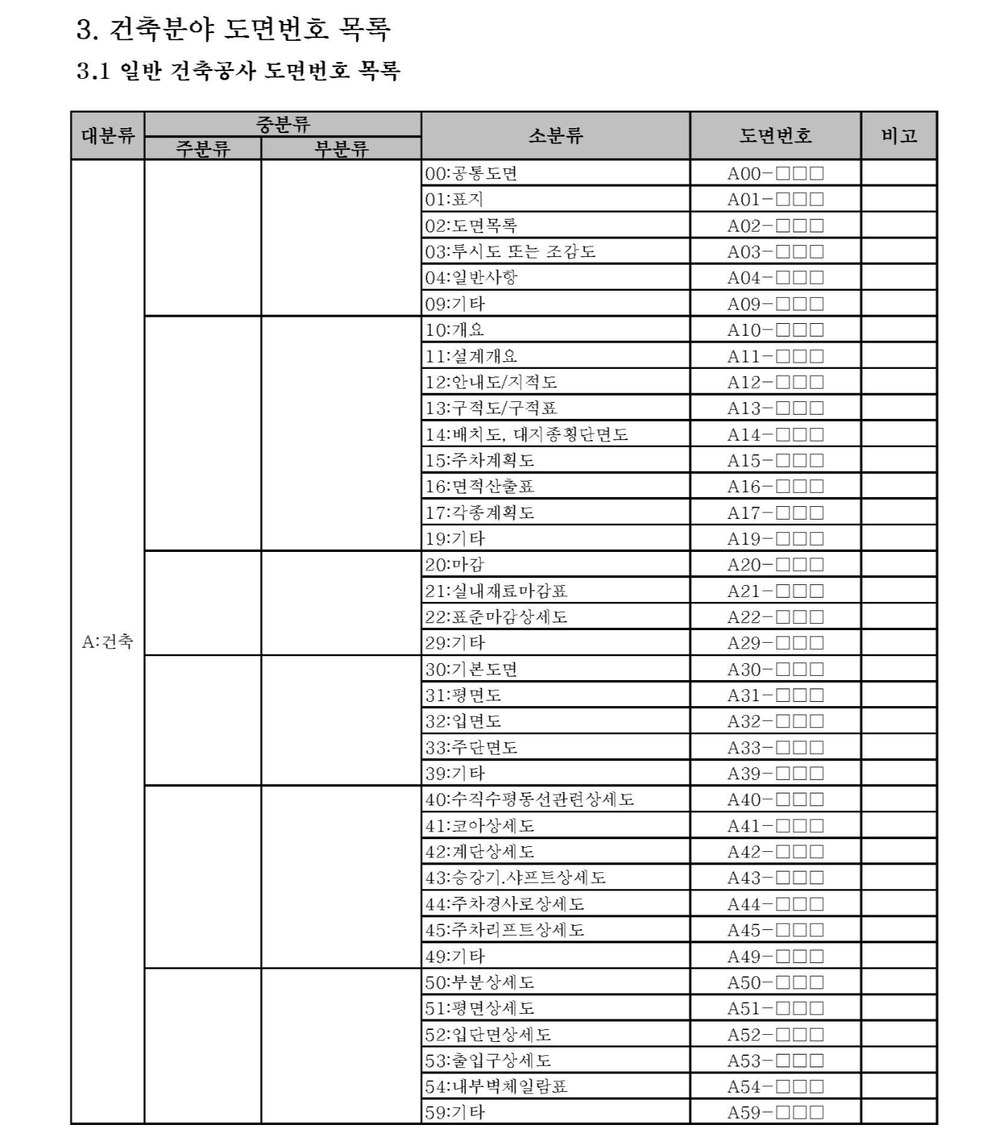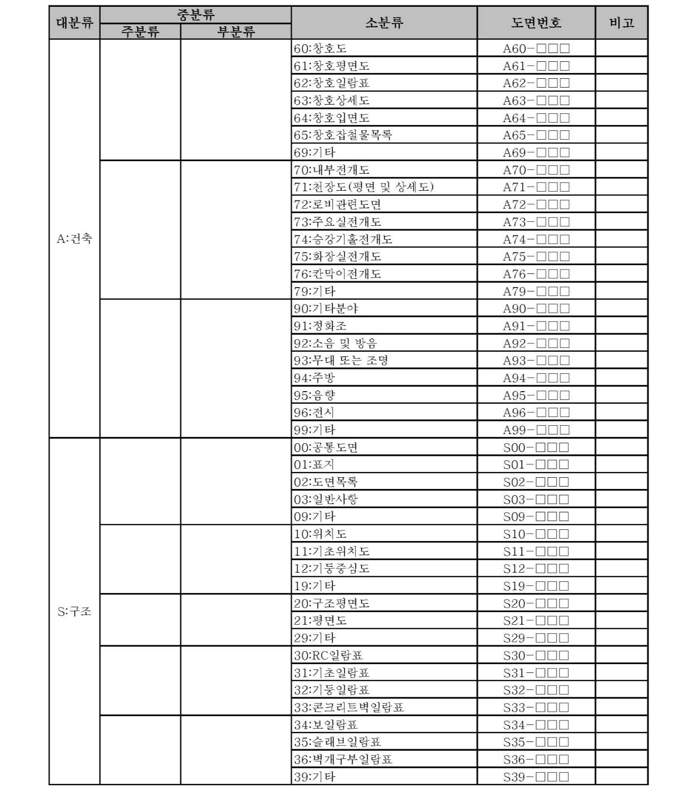 이 목록을 기준으로 도면번호를 보시고 이 도면에는 이런 내용이 들어 있겠구나 정도만 파악해 주시면 좋겠습니다.