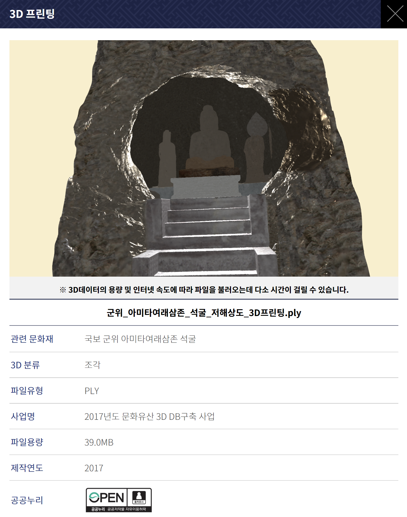 현재 문화재청 사이트를 방문해보시면 이미 많은 수의 3차원 문화유산을 만나볼 수 있습니다.