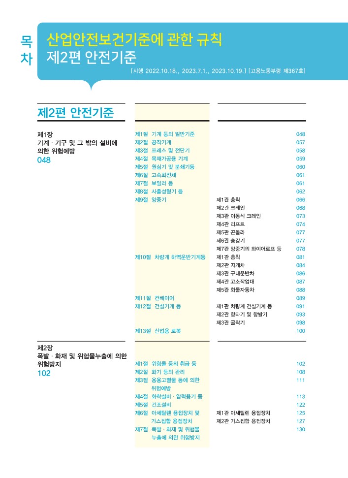 이 책자는 안전사고 예방을 위한 기준들을 설명해주는 것이라고 봐도 무방할 것 같습니다.