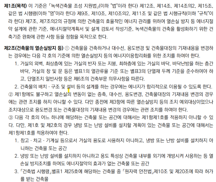 마찬가지로 건축물에도 여러가지 방법으로 에너지 절약을 위한 기준들이 있는데
