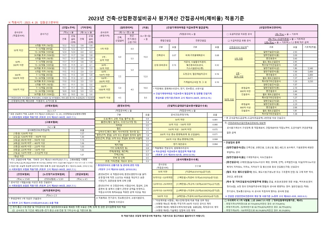 | 2023년 조달청 시설공사 원가계산 간접공사비율(제비율) 적용기준 (1) | 2023.06.02 |